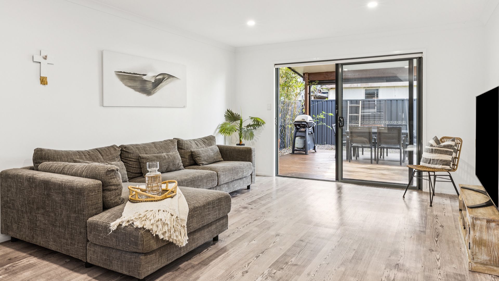 The property boasts an open dining and living area, fully equipped modern kitchen, a spacious deck overlooking tropical gardens and grassed private fully fenced yard providing the perfect surrounds for an afternoon refreshment as you reflect on the sun-drenched day you've just had exploring gorgeous Yamba. There is a narrow single lock up garage ideal for small vehicles or a private driveway provided for larger cars.