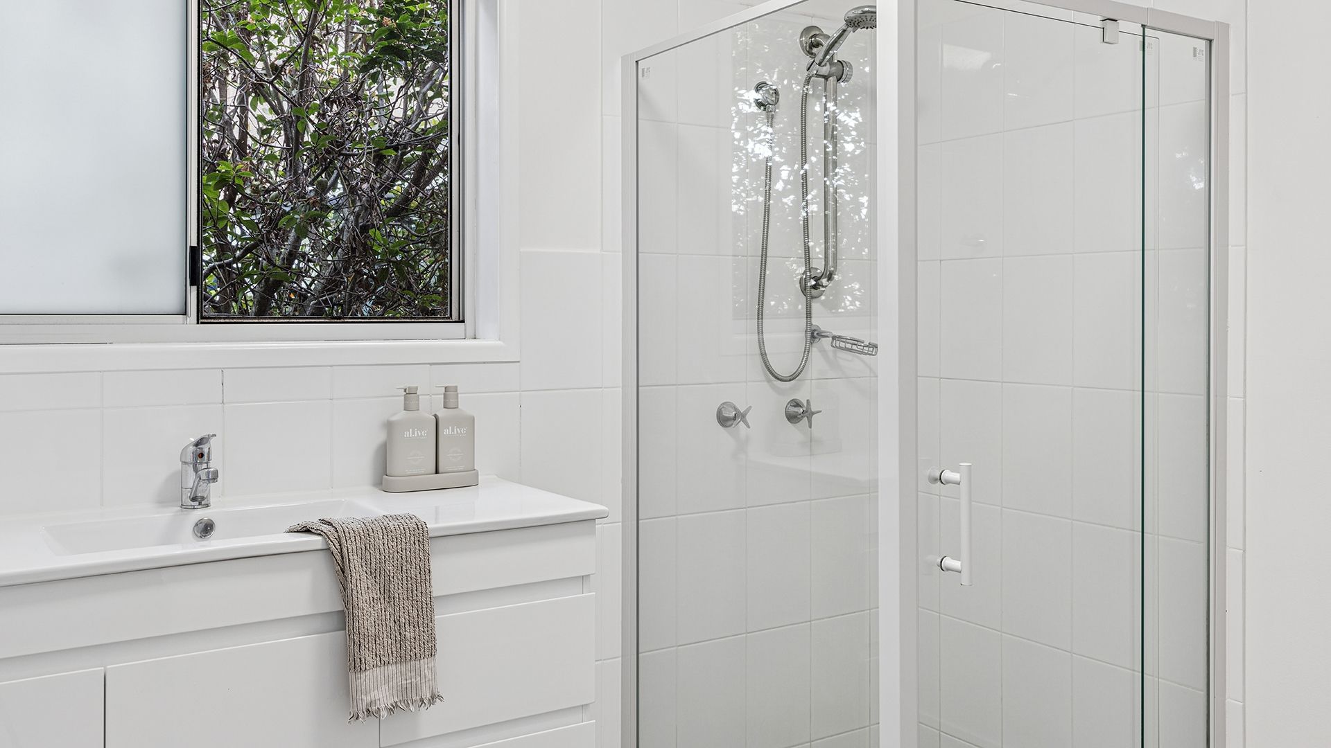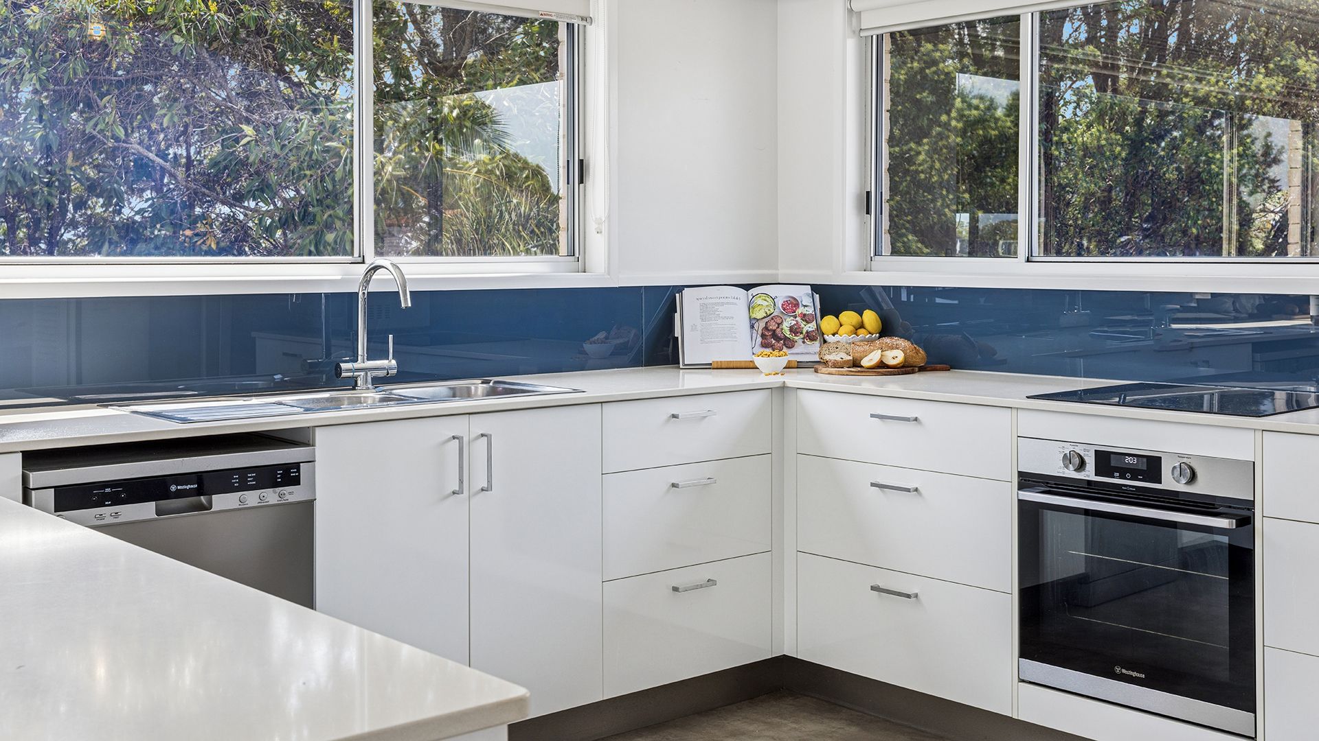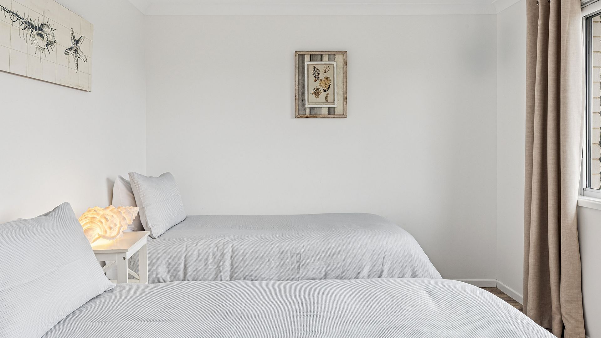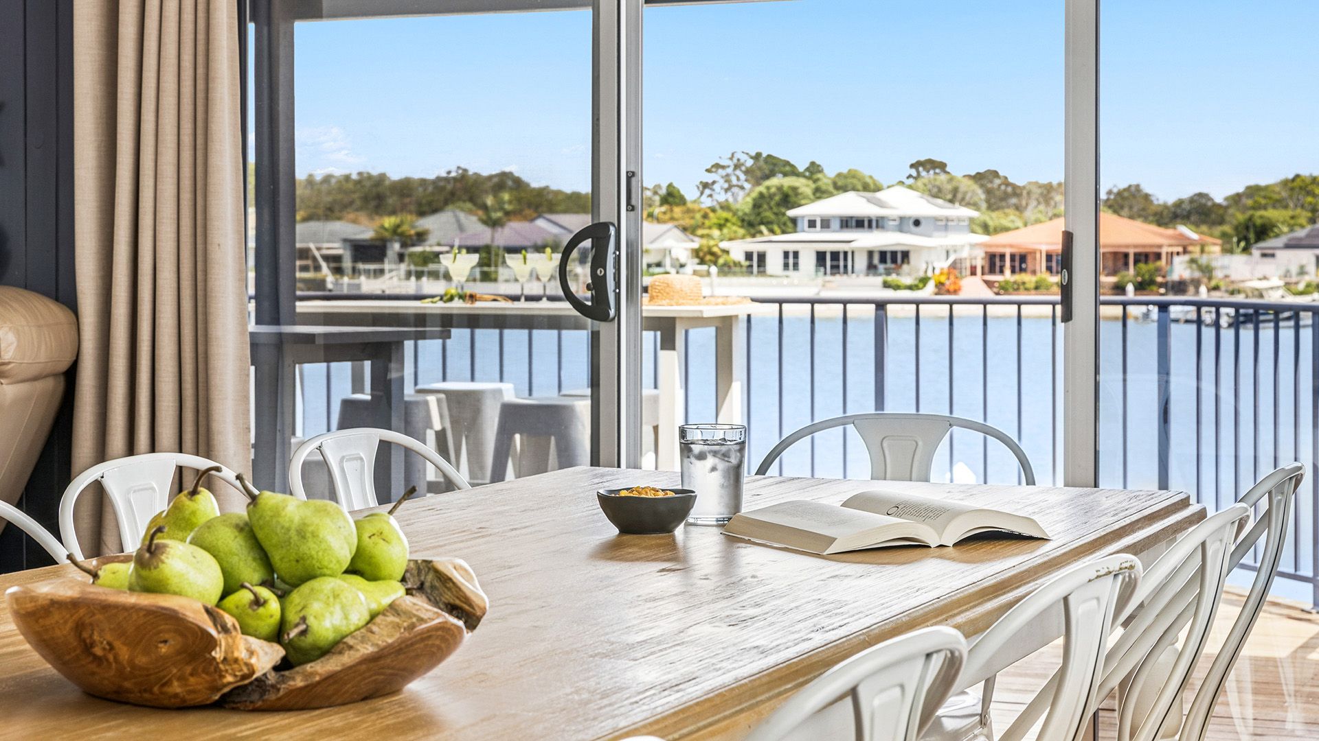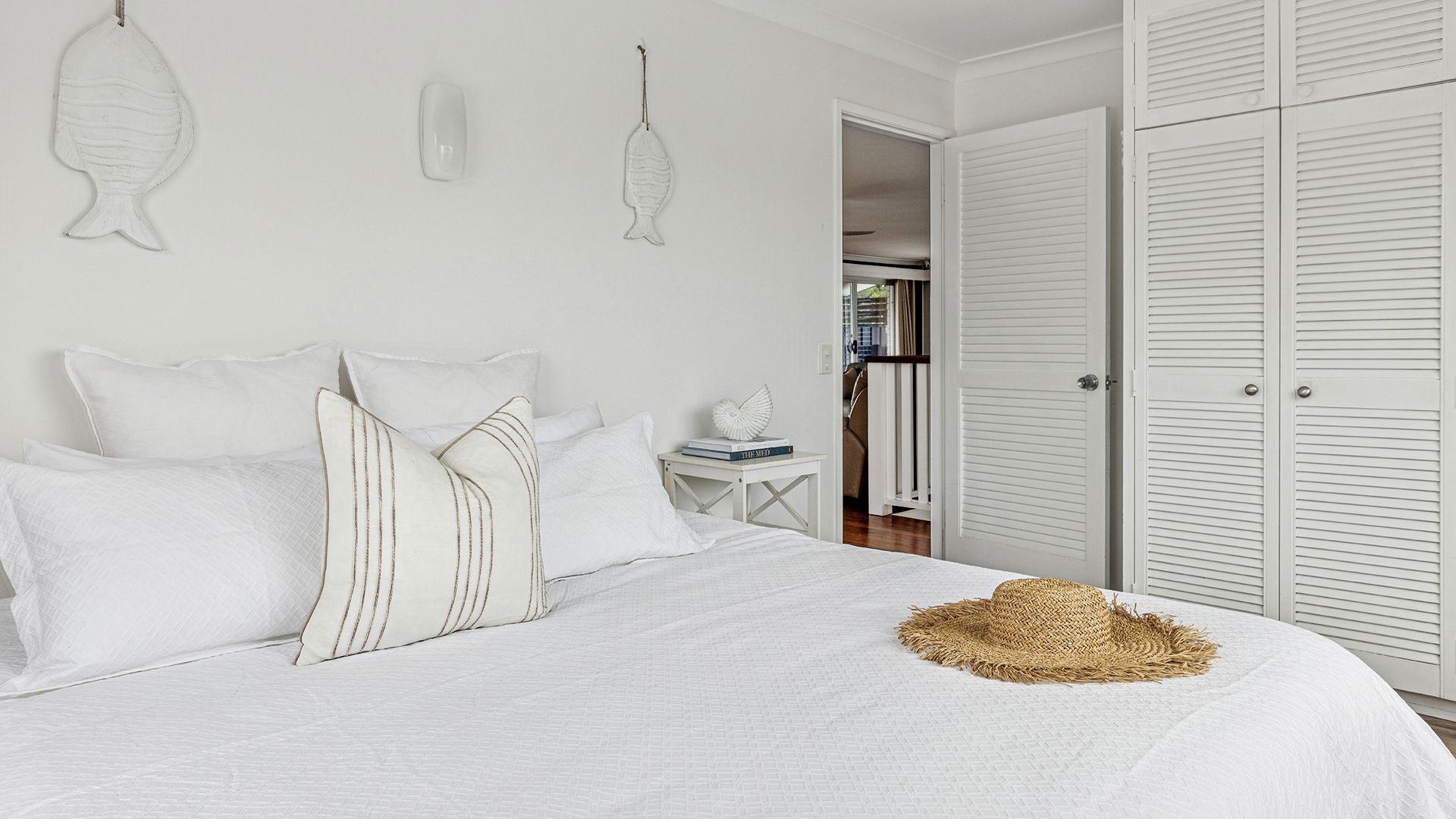 Upstairs is light, open, and breezy, featuring the main living area, dining space, and a fully equipped kitchen. The lounge comes complete with air-conditioning, ceiling fans, and a Smart TV, while water views and seamless access to the balcony make it the perfect spot for sunset drinks or a family BBQ. Three additional bedrooms upstairs all include ceiling fans, along with a central bathroom to cater for everyone’s needs.