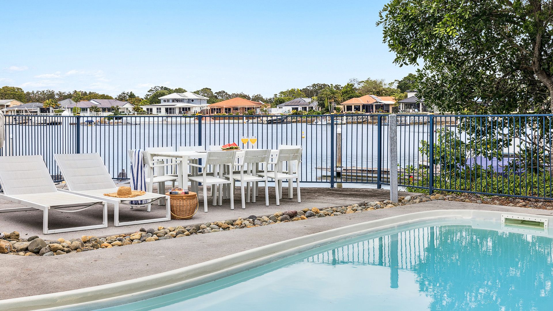Outdoors, enjoy your own private jetty and sandy beach, perfect for boating, kayaking, or simply soaking up the serene waterfront surroundings. The sparkling in-ground pool provides a refreshing escape and a space to unwind together.