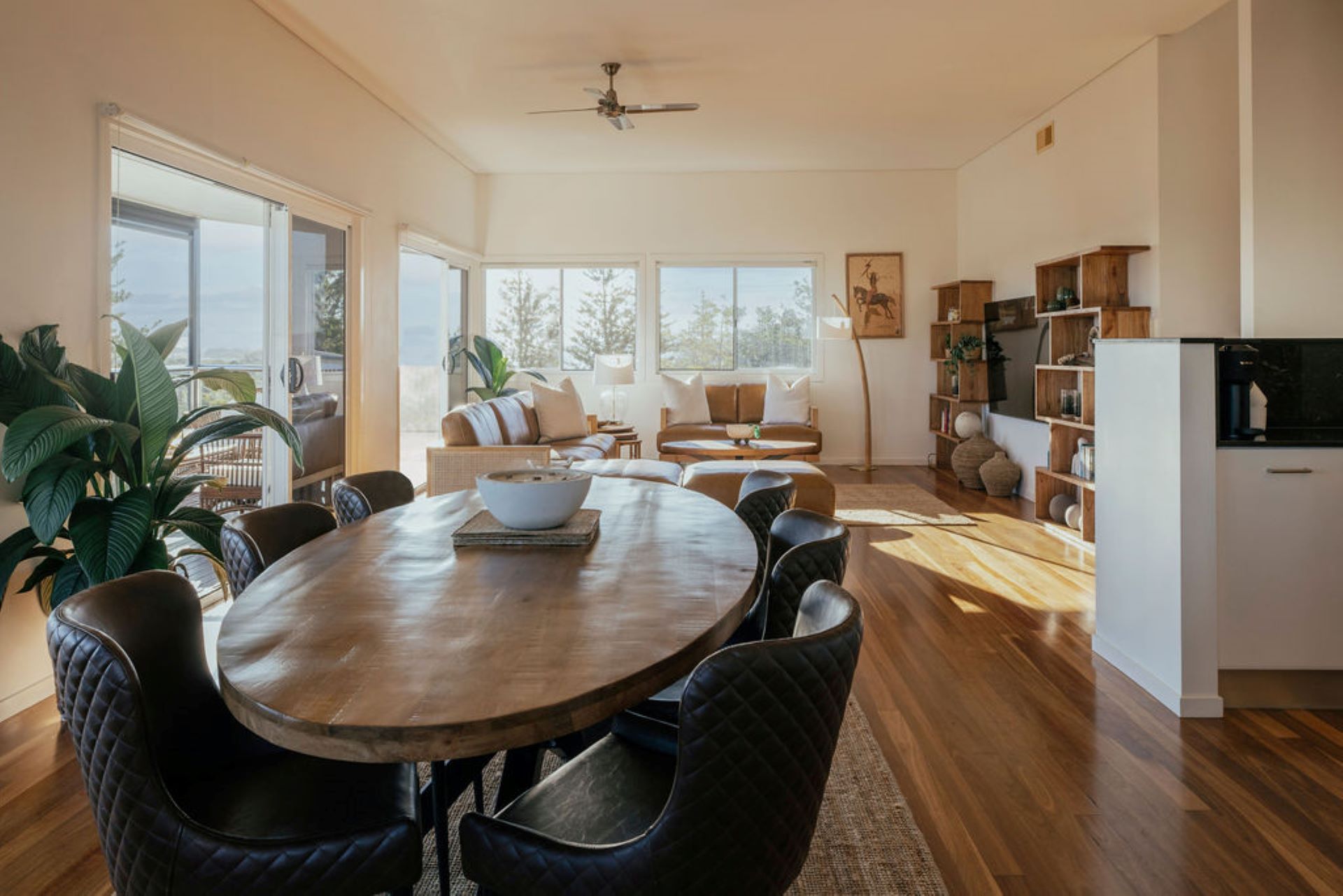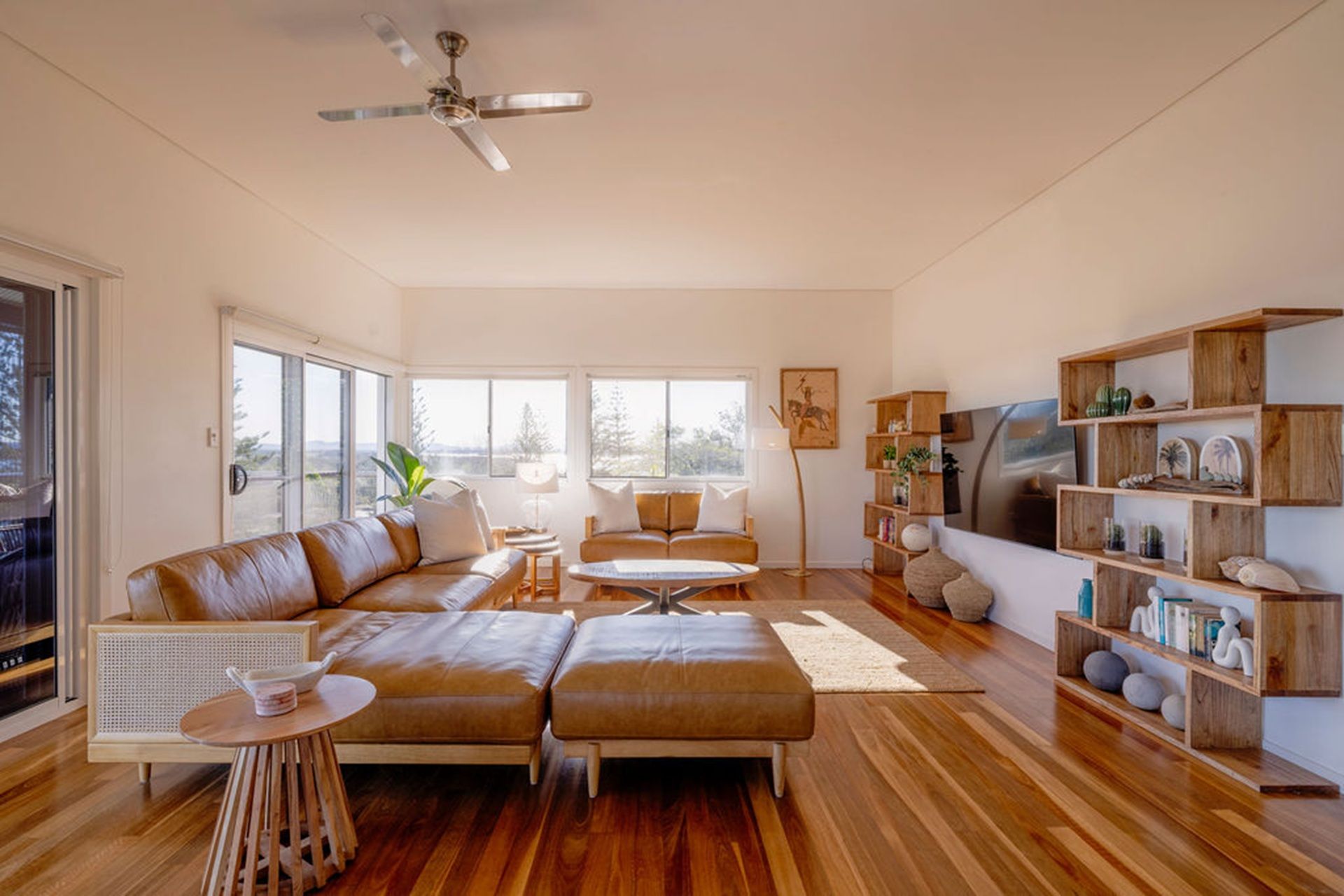 There are few locations in Yamba where you can experience the unparalleled lifestyle and ambience like Sunny's On The Hill. On arrival you are greeted by a huge open plan living area adorned with carefully curated artworks, lovingly handpicked ornaments and designer furnishings selected with a discerning eye and a savvy knowledge of taste, comfort and style. Every detail has been thoughtfully selected to create a warm, inviting atmosphere that blends effortless design with laid back holiday living charm.