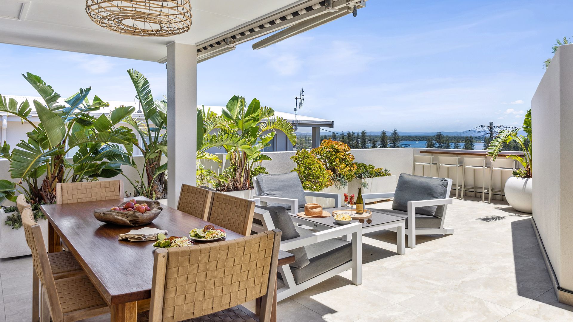 Perched on the crest of Yamba Hill and enjoying 270 degrees of the best views in town is 'Talinga 5'. This modern apartment enjoys what is arguably the pick of positions on Yamba Hill, offering a superior level of elevation with sweeping views of the blue waters of Main Beach, town and river to the north and all the way to Angourie Point, the hinterland and Lake Wooloweyah to the South. This property is a veritable feast for the eyes in every direction you look, complimented by a huge outdoor courtyard to enjoy the everchanging vista of the surrounds we call home.