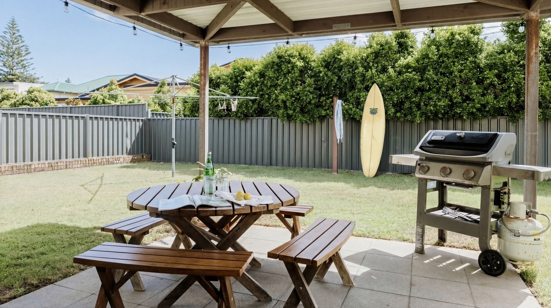 Take a step back to a simpler time at this classic beach house where warm timber walls and old-school charm whisper of endless summers gone by. You are greeted by a shout out to all things retro with the tiled entry on arrival leading you to explore the ground floor which is the recreational dream package for families opening out to a fully fenced back yard, perfect for a relaxed family barbecue while your furry friend joins in the fun.